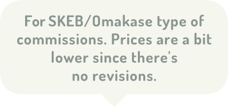 All listed prices are for personal use only, unless I state the inclusion of commercial fee in the commission's type details. (Ex. Stream resources category)
